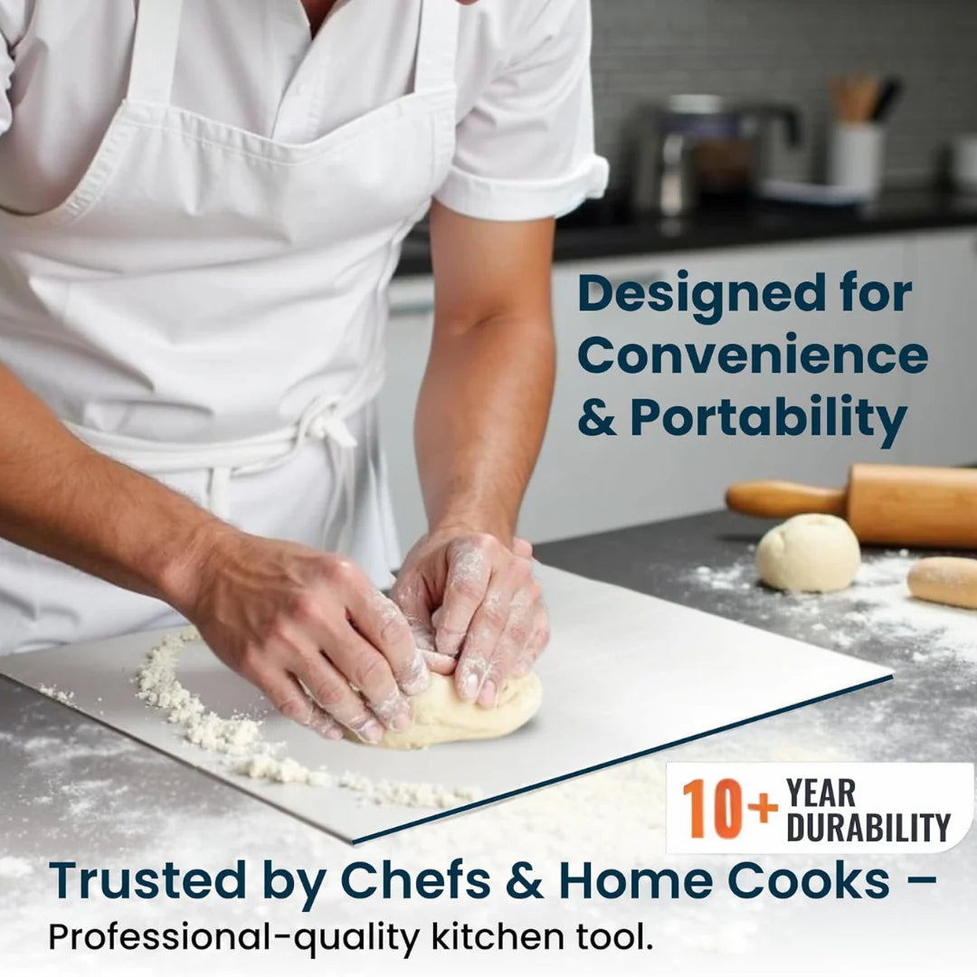 With its sleek metallic finish, it’s not just a chopping board but also a modern serving tray or pastry board—perfect for every kitchen.